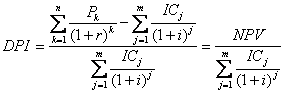 чистого приведенного эффекта (NPV) к величине инвестиций (IC) дисконтированных к началу