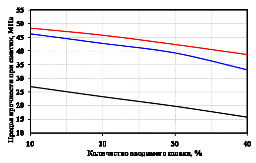 Рис.1 График зависимости предела прочности при сжатии в