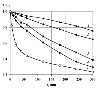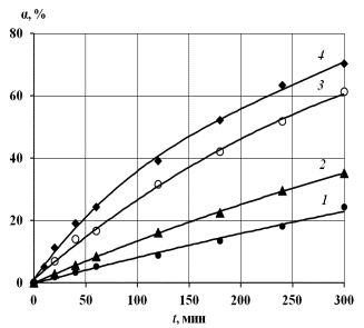 α = 100[(С0 – С)/С0] (рис. 2). Для