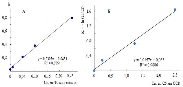 методом (А) и методом ИК-спектрометрии (Б).