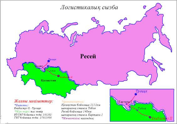 маршруты бойынша “Rail-атлас” бағдарламасының көмегімен