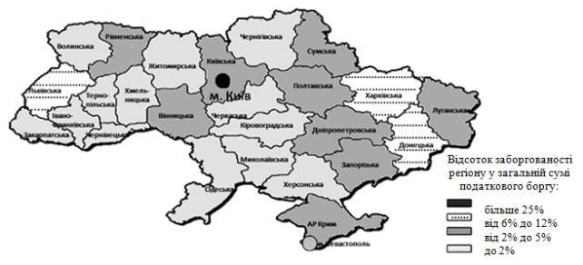 щодо розподілу регіонів України за відсотком заборгованості у загальній сумі