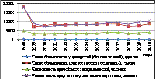 наблюдается рост количества больничных учреждений. За 2010 год численность