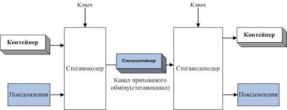 стеганокодері секретного повідомлення в контейнер-оригінал.
