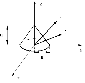 Рис. 1. Геометрия светорассеяния конусом (s, i - единичные векторы вдоль направления рассеяния и распространения света соответственно).