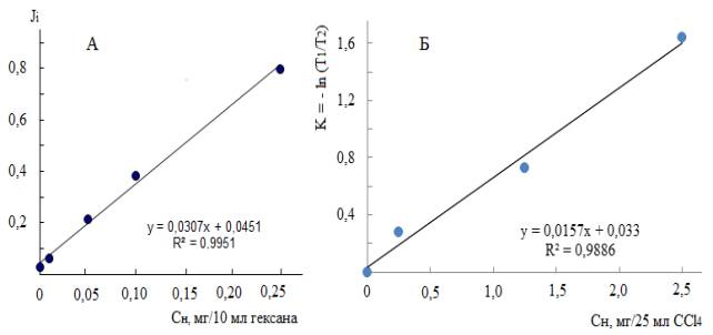 сырой нефти, полученные флуориметрическим методом (А) и методом ИК-спектрометрии (Б).
