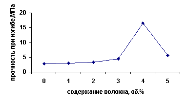 Рис. 5. Изменение прочности цементного камня в зависимости от наполнения его полиэфирным волокном