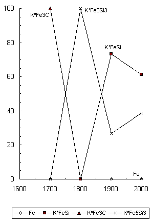 элементами и соединениями: Fe, FeO, FeSi, Fe5Si3, Si, Si2, CO и CO2.