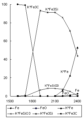 степень перехода Si в ферросплав составляет для соединения Fe3Si от 0,76% (при 1700К) до 71,96% (при Т=1900К).