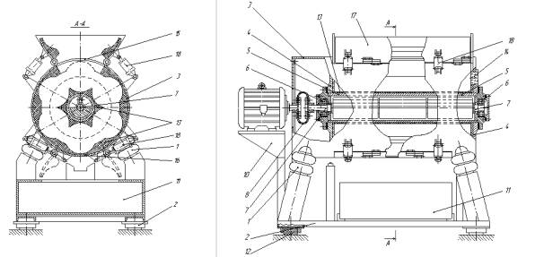 На рис.1. зображена принципова схема віброзмішувача дискретної дії для вібраційно-відцентрового перемішування ССМ різноманітних груп якості.