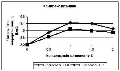 клітин лактобацил за різних концентрацій комплексу вітамінів