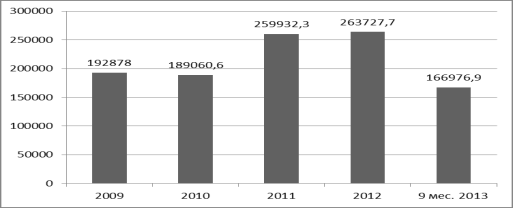 за 9 месяцев 2013 года составила 166976,9 млн.грн. (рис.1).