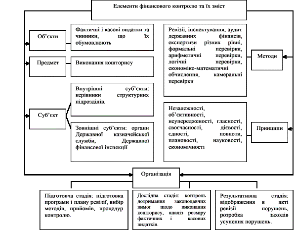 контролю виконання кошторису складають його основні елементи: об'єкти, предмет,