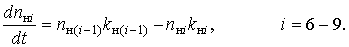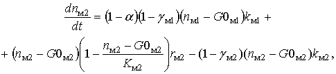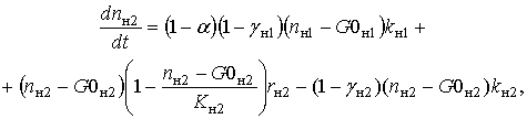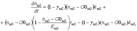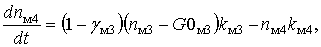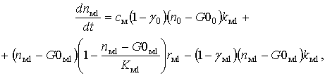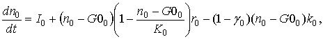 – доля клеток КОЭ-ГМ дифференцирующихся в моноциты, k0 – скорость потока КОЭ-ГМ в следующую стадию, kнi – скорость потока нейтрофилов в следующую стадию, kмi – скорость потока моноцитов в следующую стадию, n0 – общая концентрация