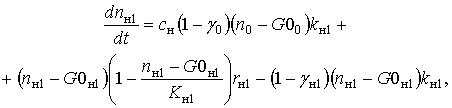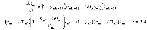 КОЭ-ГМ, nнi – общая концентрация нейтрофилов на стадии созревания, nмi – общая концентрация моноцитов на стадии созревания, r0 – скорость роста КОЭ-ГМ, rнi – скорость роста