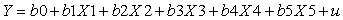 Y=1,2925 + 0,31X1 + 0,3238X2 – 3,449X3 + 2,1177X4 – 0,034X5