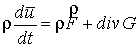 уравнение есть уравнение неразрывности, второе – уравнение движения; F - плотность массовых сил, G - тензор напряжений;