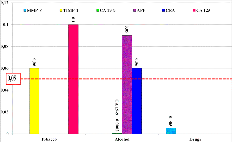 alcohol - CA 19-9, AFP, CEA, the regular use of drugs - MMP-8. The present of
