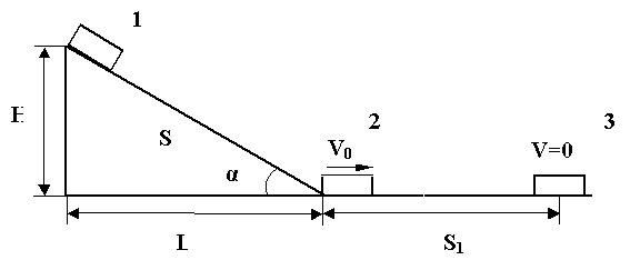 m·g·S·sinα = µ·m·g·cosα·S+ m·V02/2 (4),