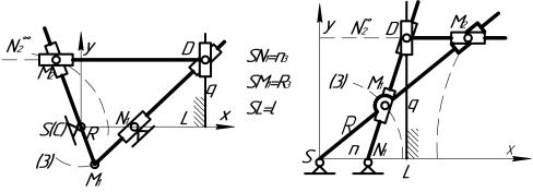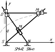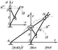кривошипно-ползунным механизмом SAD, в котором SA=AD=1/2R.Точка М2 определяется пересечением кулис SM1M2 и N2DM2 (рис. 4б).