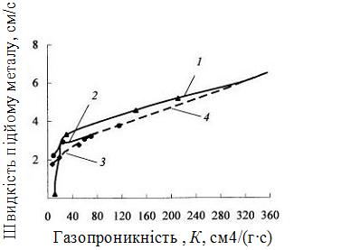 [3]. На рис. 2 представлена залежність швидкості підйому металу в порожнині форми