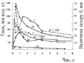 Рисунок 4 - Кінетика тиску і величини зазору δ . |