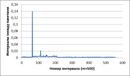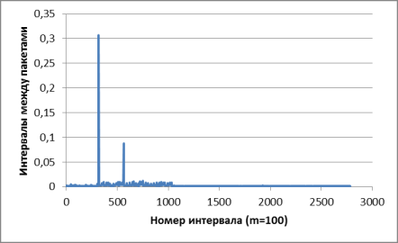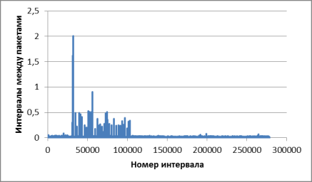 распределение имеет объем выборки 278558 пакетов. Исследованы интервалы между