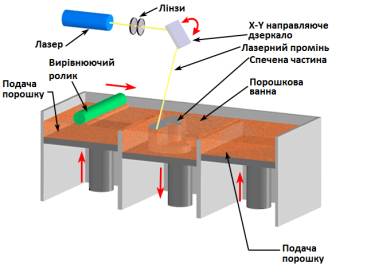 Рис. 1. Принцип роботи методу Selective Laser Sintering
