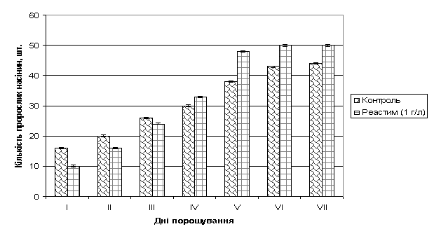 пророщування) була більшою за контроль. Застосування «Реастим-росту» призводило