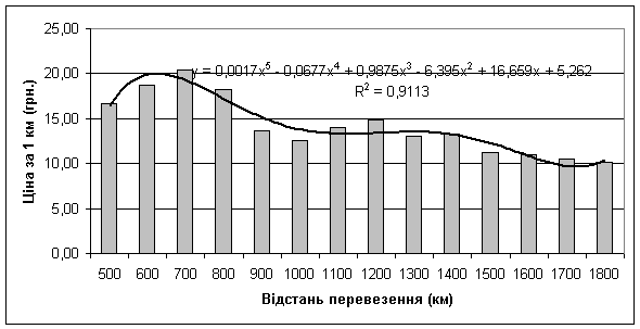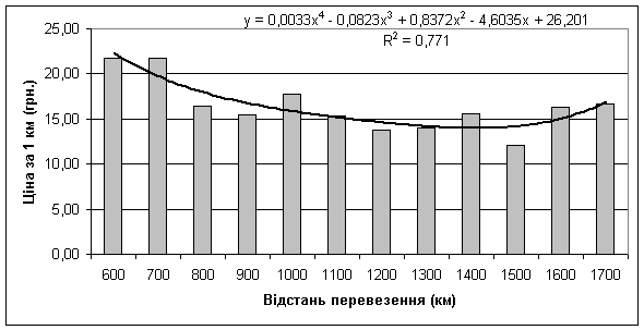 закономірність демонструє залежність ціни від відстані перевезення вантажу