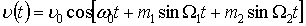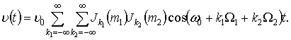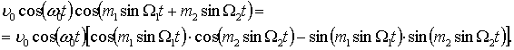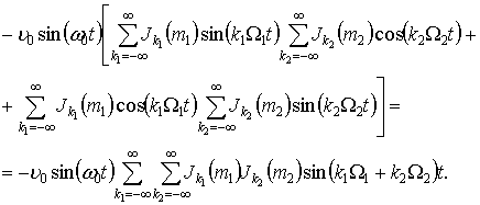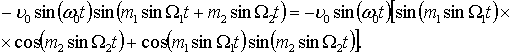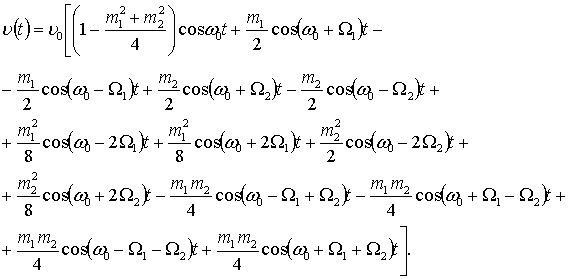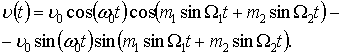 частота; Ω1, Ω2 – низькі модулюючі частоти; m1, m2 – довільні параметри модуляції; υ – коливальна швидкість частинок середовища.