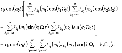 (7) у вигляді подвійної суми являє собою спектр коливань з кутовою модуляцією
