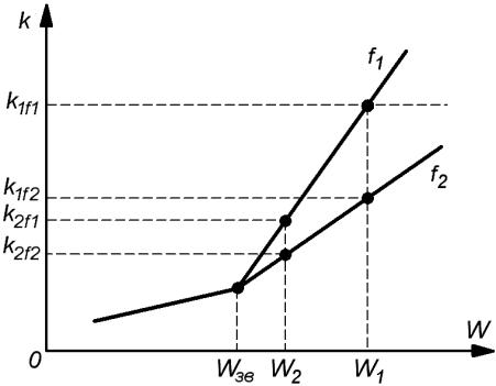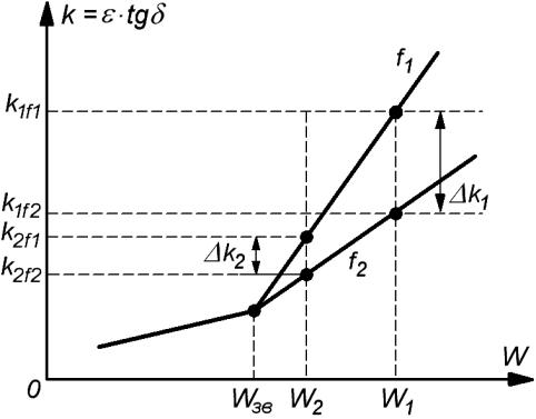 перетину цих графіків, яка є значенням зв’язаної вологості в матеріалі: