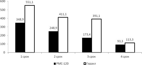 РМС-120 составил 56,8 ц/га, запаздывание на 21 день составило потерю в 41,9