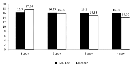 Рисунок 2. Сахаристость корнеплодов Геракл и РМС-120 в