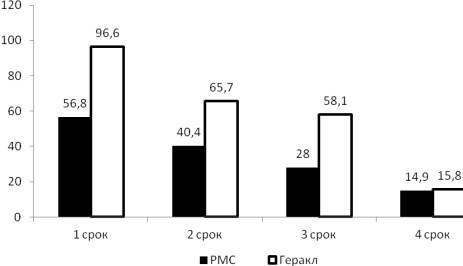 корнеплодов Геракл и РМС-120 в разные сроки посева, ц/га.