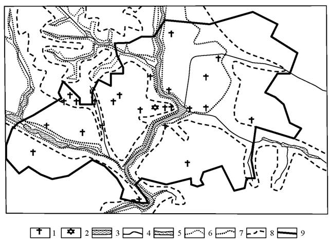 Сакральні ландшафти. Урочища: 1 – християнська група