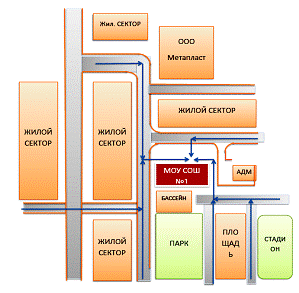 безопасных маршрутов движения. На схемах 1, 2, 3, 4, 5 представлены маршруты