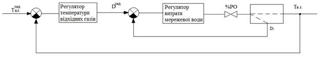 Запропонована нами схема, реалізує регулювання tв.г. Тобто температура відхідних газів