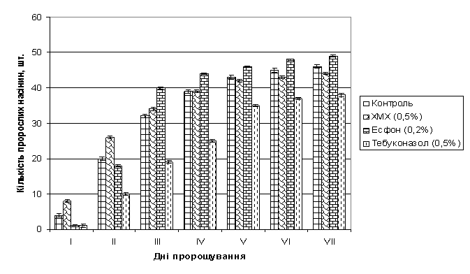 контроль. У варіанті з хлормекватхлоридом (0,5%) енергія проростання насіння не