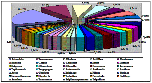 Table 1 - Distribution of species Asteraceae Dumort family of the flora