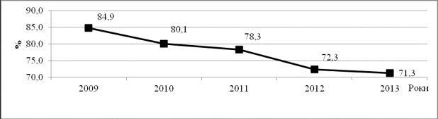дещо зменшується, у 2013 році в порівнянні з 2009 роком їх частка у загальному