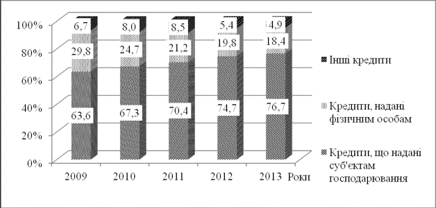 Рисунок 2 – Структура кредитного портфеля українських банків упродовж