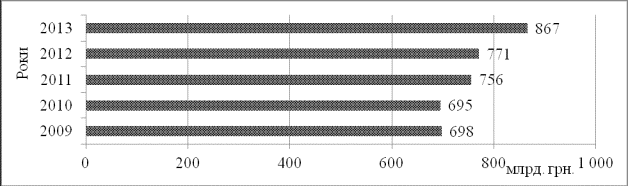 даних таблиці 1, можемо сказати, що їх обсяг впродовж 2009-2013 рр. постійно