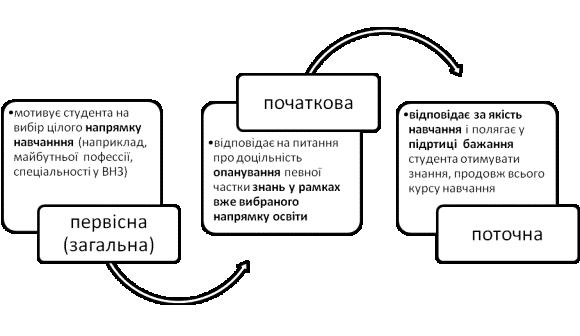 розглянути три види мотивації студентів, що показані на рисунку 1: первісна