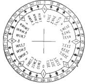 ней весь горизонт разбит на 32 румба по 11,250. Направления N, Е, S,