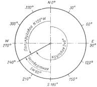 счета. В ней все направления указываются числом от 0 до 360° по часовой стрелке
