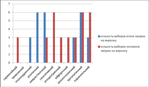 неврастенічний, егоцентричний – вибори за цими шкалами зустрічаються тільки у