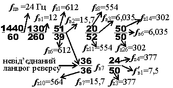 кінематичного ланцюга відповідають розрахункові частоти, наведені в