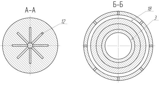цилиндрический перфорированный экран со щелями 14 одинаковых размеров. Экран 16